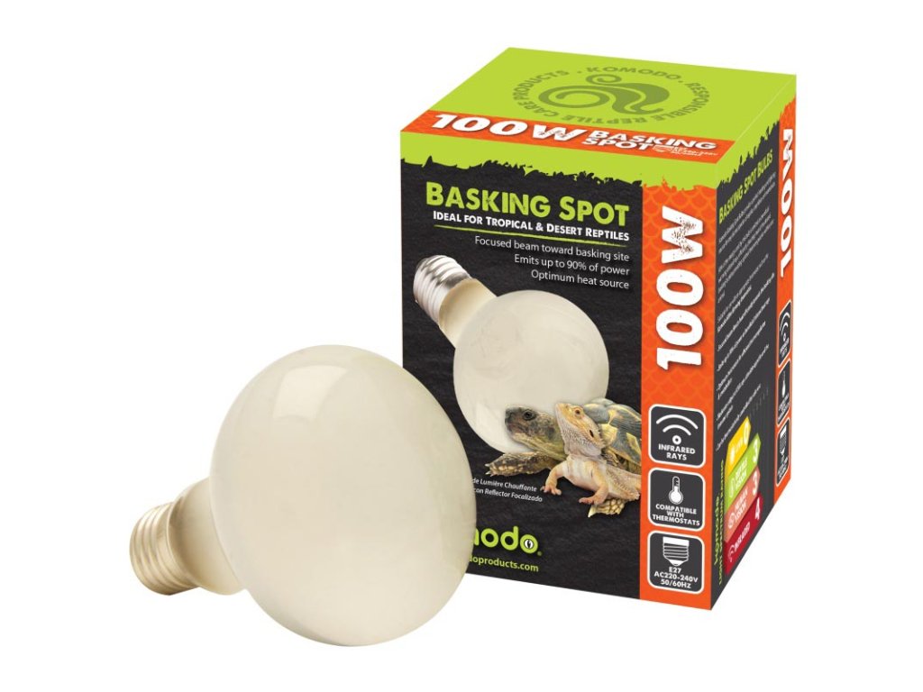 Terarijní žárovka Komodo Basking Spot Bulb je skvělým zdrojem tepla a světla pro všechny denní druhy plazů, obojživelníků i bezobratlých. Až 90 % spotřebované energie vychází z žárovky v podobě tepleného záření, které lze díky konstrukci baňky směrovat na zvolené vyhřívací místo.