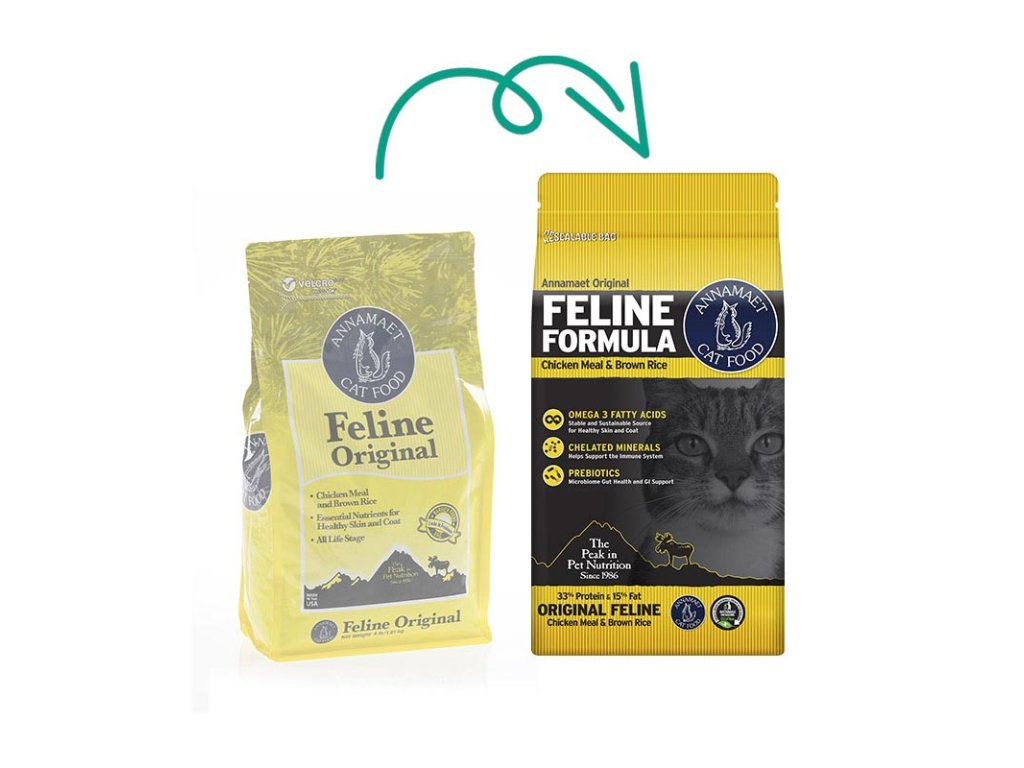 Annamaet Feline Original je receptura vyhlášená svou výjimečnou chutí. Je vyrobena z kvalitních kuřat, celozrnné rýže, bílých mořských ryb a sleďů, bez použití kukuřice a pšenice.