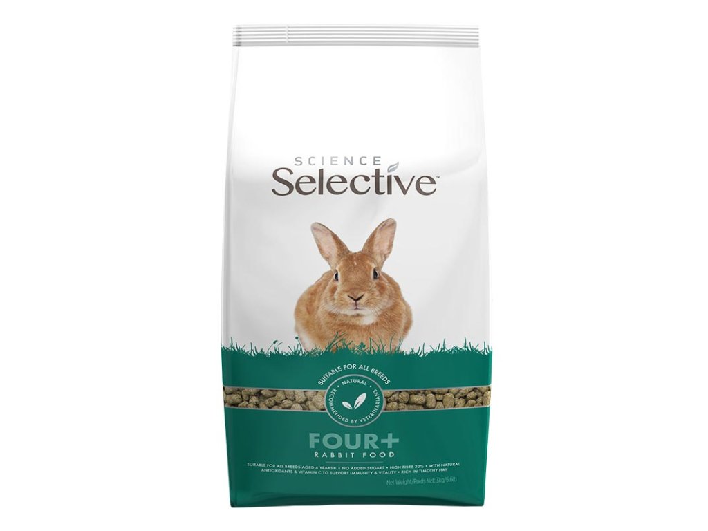 Supreme Science® Selective Rabbit 4+ je velice chutné, nutričně kompletní a vyvážené krmivo pro králíky od 4 let věku. Toto špičkové extrudované krmivo s identickými kousky zajišťuje, že si váš králík nebude vybírat z krmiva své oblíbené kousky tak, jako to může dělat u nehomogenních krmných směsí. Zde máte jistotu, že králík z krmiva získá všechno, co může krmivo poskytnout pro jeho zdraví a pohodu.
