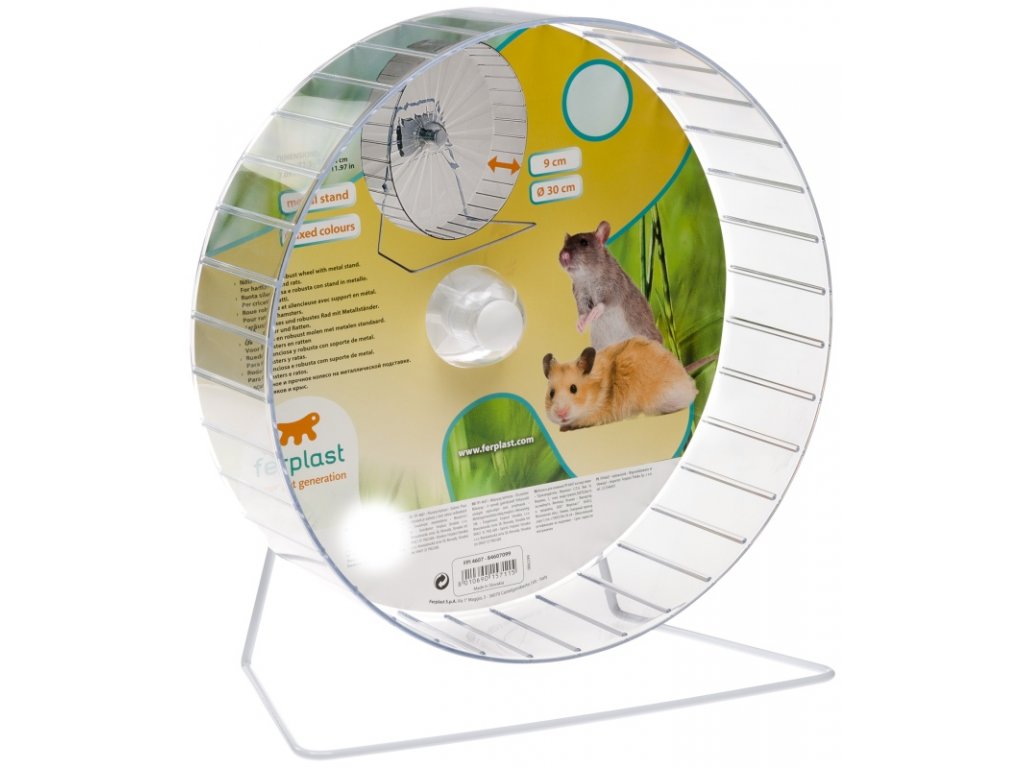 Velký plastový kolotoč na stojánku s průměrem kola 30 cm vhodný i pro větší hlodavce.