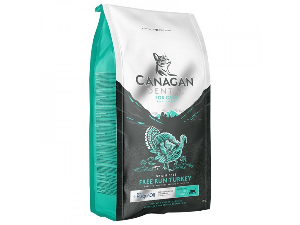 Kompletní krmivo pro kočky Canagan Dental je pečlivě připravená bezobilná receptura, jejíž hlavní složku tvoří maso krůt z volného chovu. Speciální složka ProDen PlaqueOff®, vyráběná z mořských řas získávaných podél severoatlantického pobřeží, pomáhá přirozeně snižovat tvorbu zubního plaku (do slin uvolňuje složky, které rozkládají bakteriální povlak na zubech).