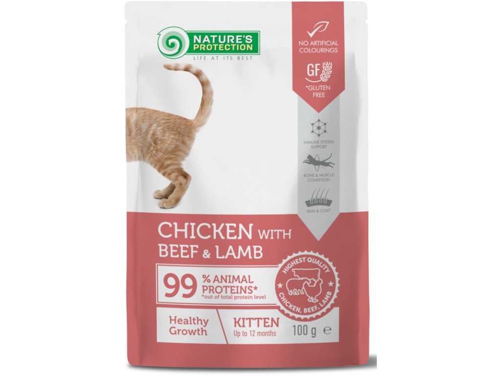 Nature's Protection Cat kaps. Kitten Chicken, Beef and Lamb 100g