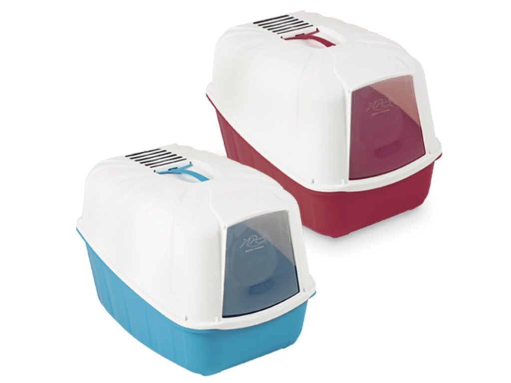 Toaleta pro kočky z lehkého plastu. Včetně čistící lopatky. Vybavena filtrem z aktivního uhlí a lítacími dvířky.