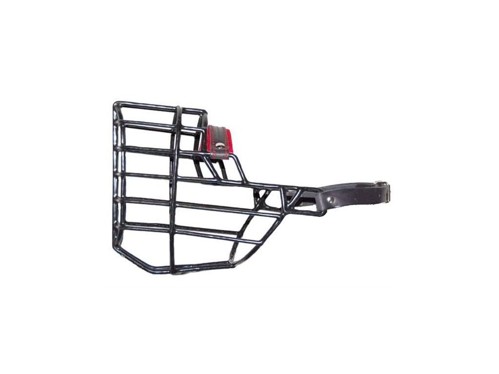 Kovový náhubek s upínacími řemínky z barexu. Kvalitní gumoplastem potažený kov zajišťuje kvalitu a dlouhověkost výrobku. Díky potahu totiž kovová konstrukce nemůže korodovat a náhubek v zimě nepřimrzá k psímu čenichu. Zároveň je výrobek snadno omyvatelný. Vhodný zejména pro plemena: německý ovčák, malamut - střední fena i pes.