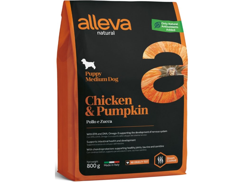 ALLEVA NATURAL Dog Dry Puppy Chicken&Pumpkin Medium 800g