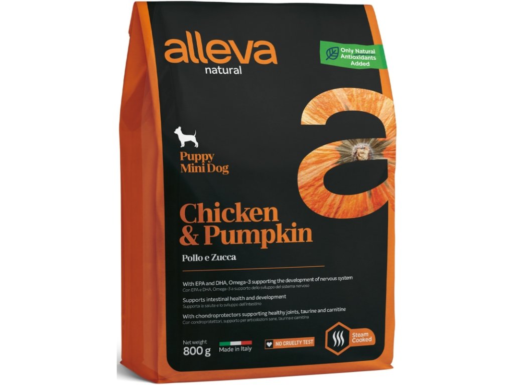 ALLEVA NATURAL Dog Dry Puppy Chicken&Pumpkin Mini 800g