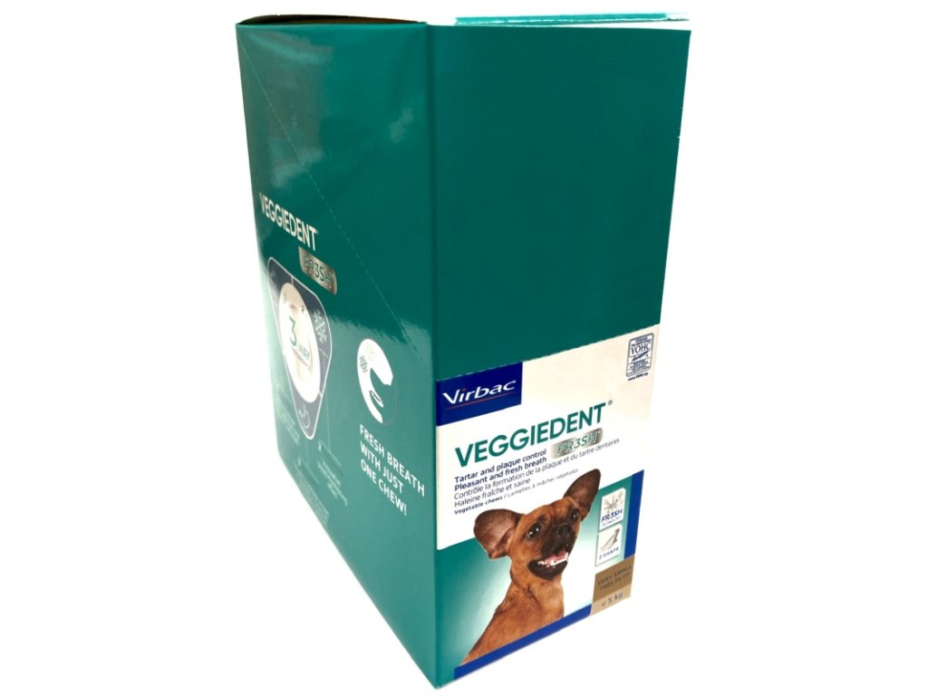 Rostlinné žvýkací plátky, které udrží zubní kámen a plak pod kontrolou. CET VeggieDent Chews s inovativním Z-tvarem, který psovi usnadňuje plátek uchopit a žvýkat. Tento tvar, velikost a textura pomáhají redukovat tvorbu plaku a zubního kamene, slouží tak jako doplněk k běžnému čištění zubů.
