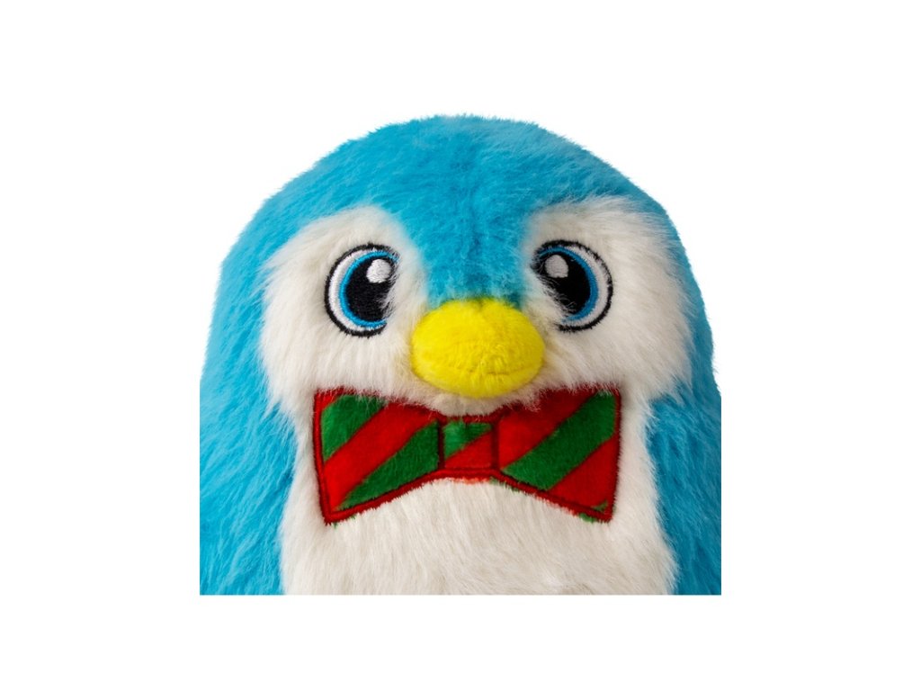 Sametově hebký plyšový tučňák KONG Holiday Snuzzles Penguin s motýlkem ve vánočních barvách láká psa nejen k mazlení, ale i k divočejším hrátkám díky odolnému pískacímu polštářku, který vyplňuje celé jeho tělo. Jemný plyš a zploštělý tvar dělají z kousání a nošení této hračky v tlamě skutečný požitek.