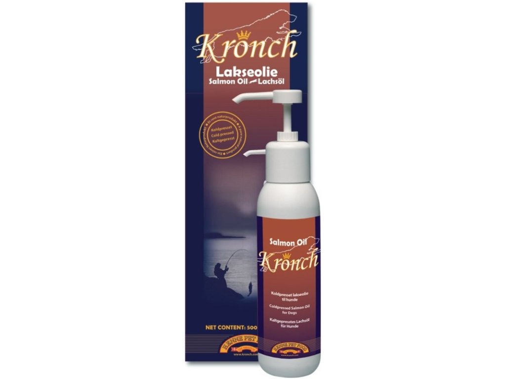 Kronch lososový olej je 100% čistý přírodní produkt určen pro všechny typy psů.
