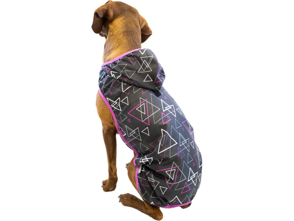 Pláštěnka Trekky ochrání vašeho psa před deštěm, větrem a jiným nepříznivým počasím. Svrchní vrstva z bundové tkaniny s voděodolným zátěrem je podšitá měkkou svetrovinou. Obleček je tvarovaný anatomicky tak, aby psa neomezoval v pohybu, a přitom chránil všechny důležité partie jeho těla. Je opatřený elastickým lemem, který brání úniku tepla po jeho celém obvodu. Gumičky v zadní části zaručí, aby pláštěnka přiléhala k zadním končetinám. V oblasti šíje se nachází otvor pro připnutí vodítka k obojku a praktické poutko pro zavěšení oblečku například při jeho sušení. Díky systému suchých zipů lze pláštěnku snadno a rychle navléknout a díky oboustrannému zapínání pod krkem lze optimálně nastavit obvod krční části. Na obou bocích jsou pak našité zipy, kterými lze zapnout spodek oblečku zleva i zprava. Pro bezpečnější venčení za zhoršené viditelnosti je pláštěnka opatřena reflexními prvky.