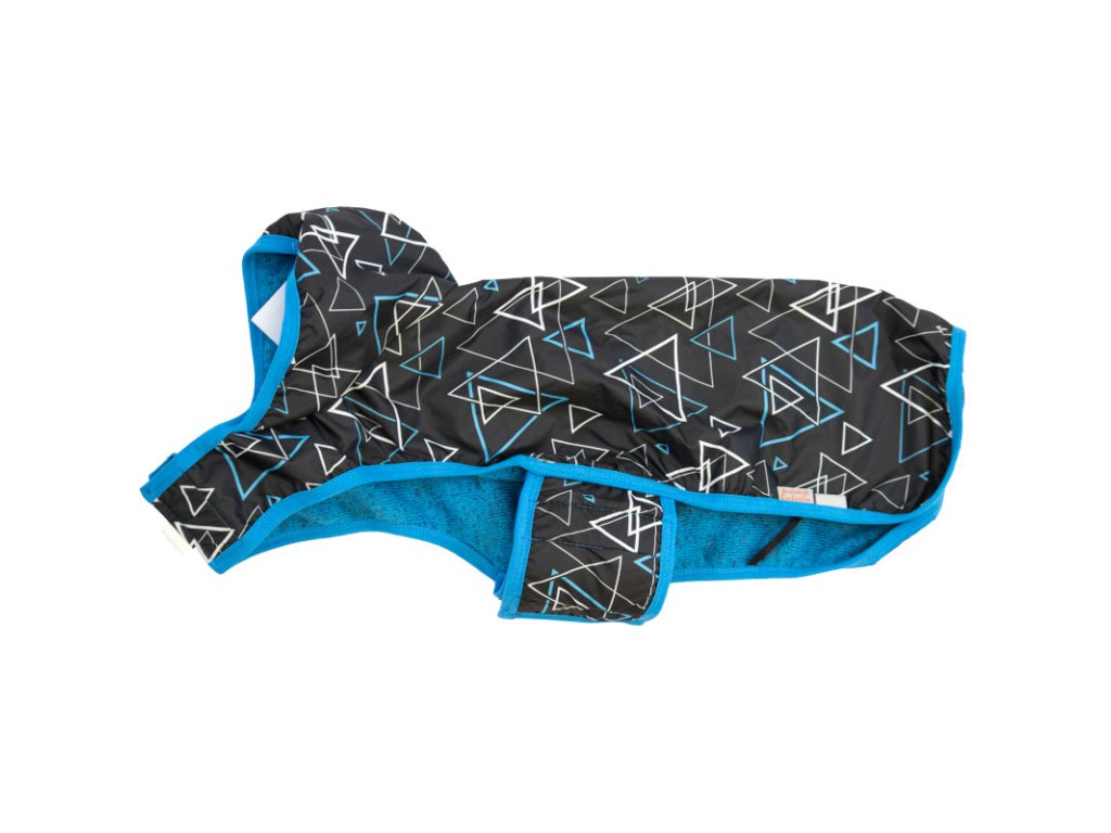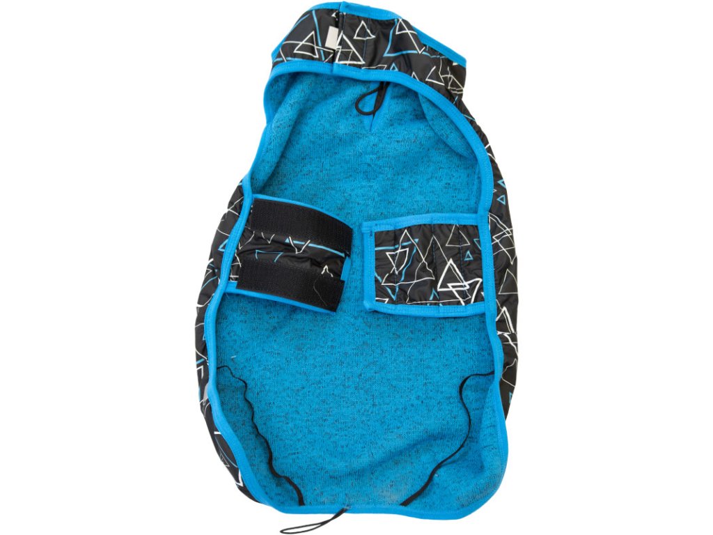 Pláštěnka Trekky ochrání vašeho psa před deštěm, větrem a jiným nepříznivým počasím. Svrchní vrstva z bundové tkaniny s voděodolným zátěrem je podšitá měkkou svetrovinou. Obleček je tvarovaný anatomicky tak, aby psa neomezoval v pohybu, a přitom chránil všechny důležité partie jeho těla. Je opatřený elastickým lemem, který brání úniku tepla po jeho celém obvodu. Gumičky v zadní části zaručí, aby pláštěnka přiléhala k zadním končetinám. V oblasti šíje se nachází otvor pro připnutí vodítka k obojku a praktické poutko pro zavěšení oblečku například při jeho sušení. Díky systému suchých zipů lze pláštěnku snadno a rychle navléknout a díky oboustrannému zapínání pod krkem lze optimálně nastavit obvod krční části. Na obou bocích jsou pak našité zipy, kterými lze zapnout spodek oblečku zleva i zprava. Pro bezpečnější venčení za zhoršené viditelnosti je pláštěnka opatřena reflexními prvky.