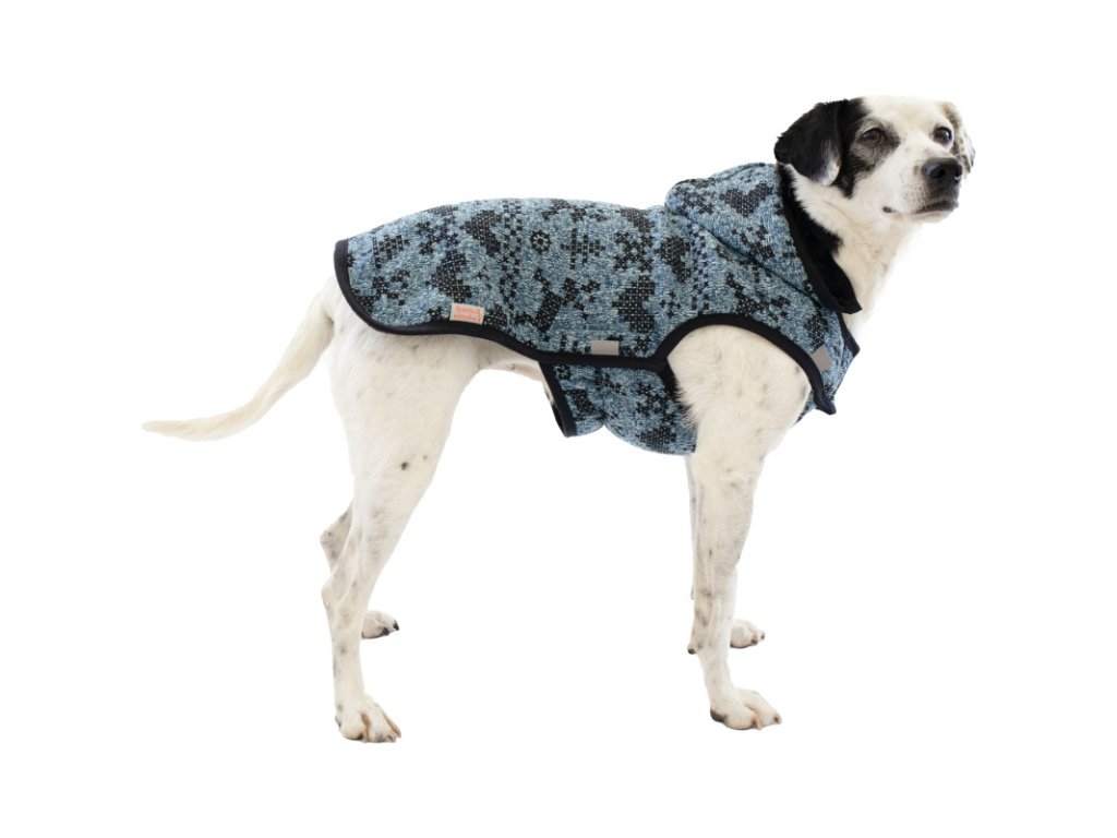 Svetr Cindy II z kvalitní úpletoviny s měkkou flanelflísovou podšívkou je vhodný do chladnějšího, ale suchého počasí. Obleček je velice lehký a prodyšný a jeho střih je navržen tak, aby psa neomezoval v pohybu, a přitom chránil všechny důležité partie jeho těla. Okraje jsou obšité pružným lemem, takže obleček výborně drží na těle psa, nepodfukuje a neuniká zpod něj teplo. Gumičky na zadní nohy a ocásek zajišťují, aby svetr neodstával v zadní části. Za krkem je otvor pro připnutí vodítka a všité poutko pro zavěšení (např. při sušení). Obleček se snadno nasazuje a velikostně uzpůsobuje díky systému suchých zipů: oboustranné zapínání pod krkem umožňuje nastavení obvodu krční části a zipy na bocích zapnutí břišního dílu zleva i zprava. Pro bezpečnější venčení za zhoršené viditelnosti je svetr opatřen reflexními štítky.