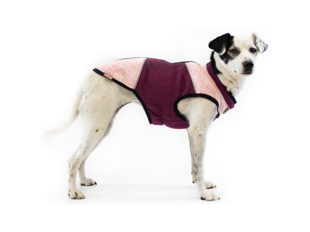 Svetr Frankie z kvalitní úpletoviny je ideální obleček do chladnějšího, ale suchého počasí. Obleček je vhodný i pro starší a nemocné psy nebo psy, kteří se neradi oblékají. Je tvarovaný anatomicky tak, aby psa neomezoval v pohybu, a přitom chránil všechny důležité partie jeho těla. Okraje jsou obšité pružným lemem, takže neodstávají a vesta díky tomu výborně drží na těle psa, nepodfukuje a neuniká zpod ní teplo. Pod krkem je všité poutko pro zavěšení (např. při sušení). Oblékání je velmi snadné a rychlé: přední nohy prostrčíte skrz otvory a obleček zapnete pomocí zipu všitého přes celá záda. Pro bezpečnější venčení za zhoršené viditelnosti je vesta opatřena reflexními prvky.