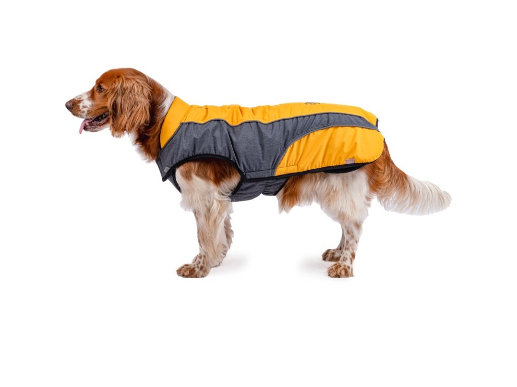 Zateplená vesta Esmé Lux II ochrání vašeho psa před chladem, větrem, deštěm i sněhem. Svrchní vrstva z bundové tkaniny s voděodolným zátěrem je zateplená vafixem a podšitá měkkým flanel fleecem, který nezacuchává srst. Obleček je tvarovaný tak, aby psa neomezoval v pohybu, a přitom chránil všechny důležité partie jeho těla. Gumičky na zadní nohy a ocásek zajišťují, aby vesta neodstávala v zadní části, a elastický lem brání úniku tepla po celém obvodu oblečku. Za krkem je otvor pro připnutí vodítka k obojku a poutko pro zavěšení (při sušení atd.). Oblékání je snadné a rychlé díky systému suchých zipů: oboustranné zapínání pod krkem umožňuje optimální nastavení obvodu krční části a zipy na bocích umožňují zapnutí břišní části zleva i zprava. Pro bezpečnější venčení za zhoršené viditelnosti je vesta opatřena reflexními prvky.