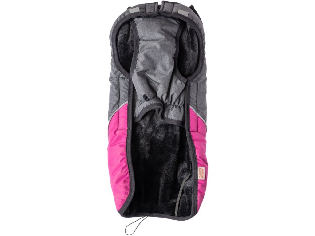 Zateplená vesta Esmé Lux II ochrání vašeho psa před chladem, větrem, deštěm i sněhem. Svrchní vrstva z bundové tkaniny s voděodolným zátěrem je zateplená vafixem a podšitá měkkým flanel fleecem, který nezacuchává srst. Obleček je tvarovaný tak, aby psa neomezoval v pohybu, a přitom chránil všechny důležité partie jeho těla. Gumičky na zadní nohy a ocásek zajišťují, aby vesta neodstávala v zadní části, a elastický lem brání úniku tepla po celém obvodu oblečku. Za krkem je otvor pro připnutí vodítka k obojku a poutko pro zavěšení (při sušení atd.). Oblékání je snadné a rychlé díky systému suchých zipů: oboustranné zapínání pod krkem umožňuje optimální nastavení obvodu krční části a zipy na bocích umožňují zapnutí břišní části zleva i zprava. Pro bezpečnější venčení za zhoršené viditelnosti je vesta opatřena reflexními prvky.