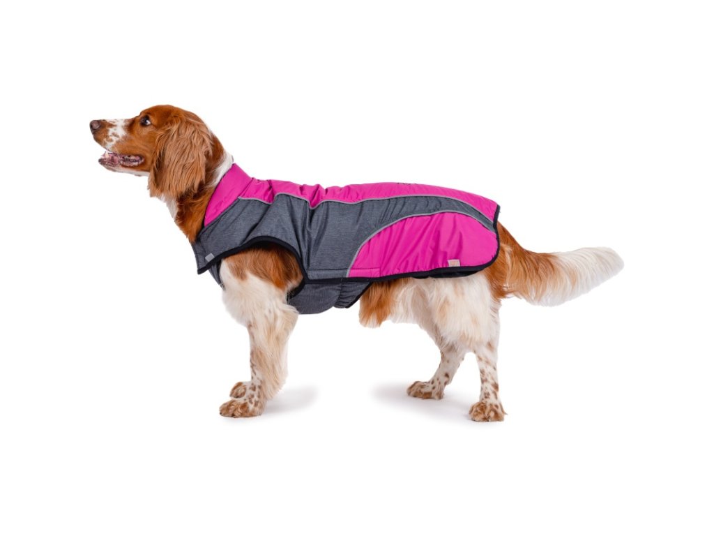Zateplená vesta Esmé Lux II ochrání vašeho psa před chladem, větrem, deštěm i sněhem. Svrchní vrstva z bundové tkaniny s voděodolným zátěrem je zateplená vafixem a podšitá měkkým flanel fleecem, který nezacuchává srst. Obleček je tvarovaný tak, aby psa neomezoval v pohybu, a přitom chránil všechny důležité partie jeho těla. Gumičky na zadní nohy a ocásek zajišťují, aby vesta neodstávala v zadní části, a elastický lem brání úniku tepla po celém obvodu oblečku. Za krkem je otvor pro připnutí vodítka k obojku a poutko pro zavěšení (při sušení atd.). Oblékání je snadné a rychlé díky systému suchých zipů: oboustranné zapínání pod krkem umožňuje optimální nastavení obvodu krční části a zipy na bocích umožňují zapnutí břišní části zleva i zprava. Pro bezpečnější venčení za zhoršené viditelnosti je vesta opatřena reflexními prvky.