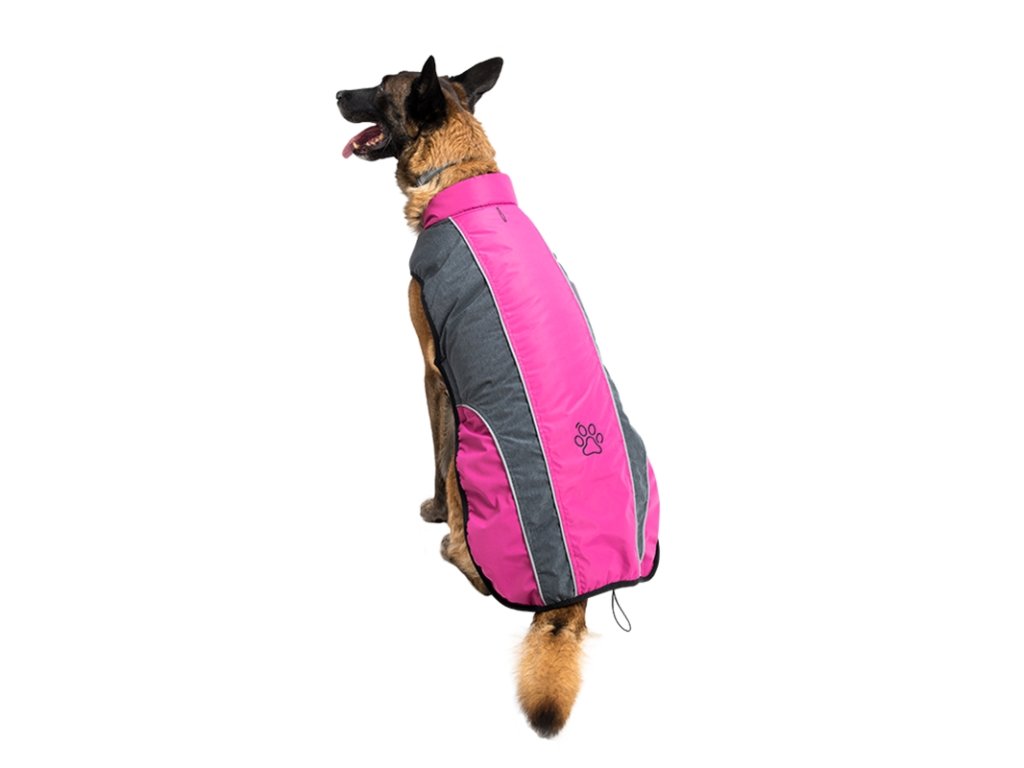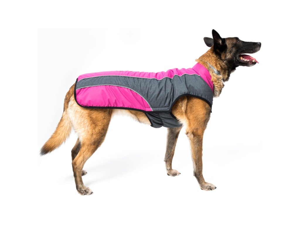 Zimní vesta ESMÉ LUX ochrání vašeho psa před chladem, větrem, deštěm i sněhem. Svrchní vrstva z bundové tkaniny s voděodolným zátěrem je zateplená vafixem a podšitá měkkým flanel fleecem, který nezacuchává srst. Obleček je tvarovaný tak, aby psa neomezoval v pohybu, a přitom chránil všechny důležité partie jeho těla. Gumičky na stehna a na ocásek zajišťují, aby vesta neodstávala v zadní části, a elastický lem brání úniku tepla po celém obvodu oblečku. Za krkem je otvor pro připnutí vodítka k obojku a poutko pro zavěšení (při sušení atd.). Oblékání je snadné a rychlé: vesta se zapíná na suché zipy – 1 pod krkem a 1 pod hrudníkem. Samozřejmostí jsou reflexní prvky.
