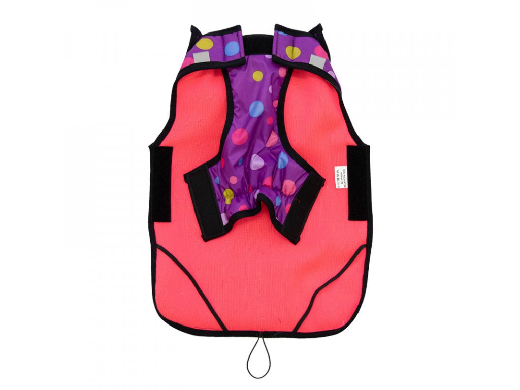 Zateplená vesta Mia Lux II ochrání Vašeho psa před chladem, větrem, deštěm i sněhem. Svrchní vesta je z PVC materiálu je zateplená vafixem a podšitá svetrovinou. Obleček je tvarovaný anatomicky tak, aby psa neomezoval v pohybu, a přitom chránil všechny důležité partie jeho těla. Gumička na ocásek zajišťuje, aby vesta neodstávala v zadní části, a elastický lem brání úniku tepla po celém obvodu oblečku. Za krkem je otvor pro připnutí vodítka k obojku a poutko pro zavěšení (při sušení atd.). Oblékání je snadné a rychlé díky systému suchých zipů, oboustranné zapínání pod krkem umožňuje optimální nastavení obvodu krční části a zipy na bocích umožňují zapnutí břišní části zleva i zprava. Pro bezpečnější venčení za zhoršené viditelnosti je vesta opatřena reflexními prvky.