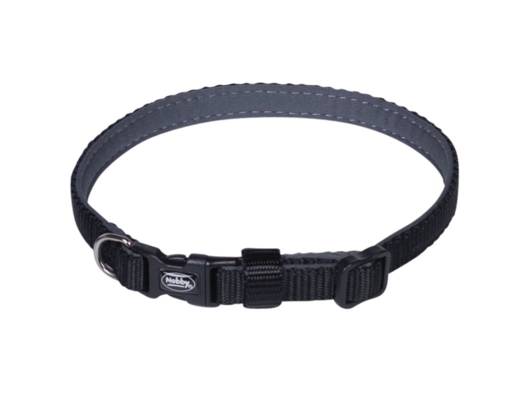 Kvalitní nylonový obojek Nobby podšitý neoprenovou vrstvou, která je šetrná k srsti psa, ale také rychle schne, když se pes v létě rád koupe.