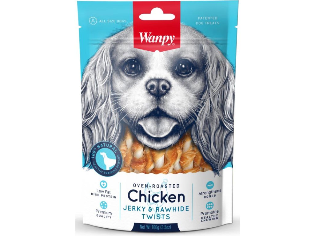 Wanpy Dog Chicken Jerky & Rawhide Twists 100 g
