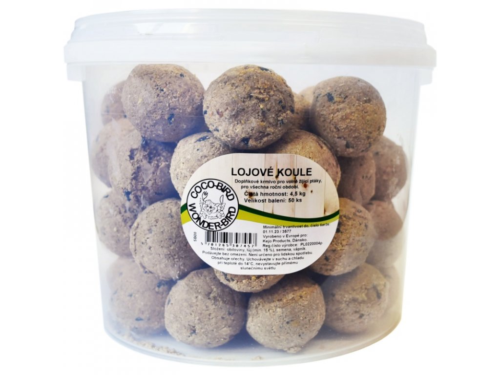 Lojovými koulemi lze ptáky přikrmovat celoročně, kromě velmi teplého letního období.